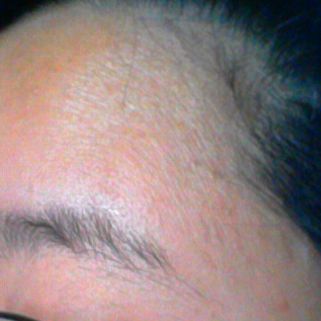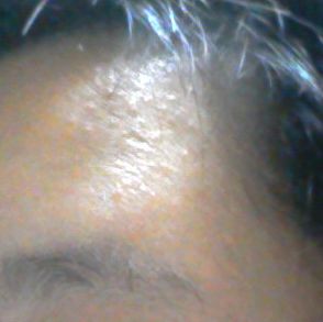 額の生え際デコボコ、頬には赤ニキビ。いややわー。
