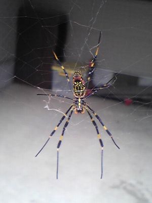 車庫の入口をふさぐかのようにどどーんと巣を張ってらっしゃいました。