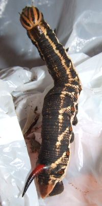 幼虫図鑑によると、どうやらエビガラスズメなのではないかと