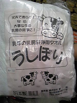 これは牛の乳を拭くためのタオルなんですがネーミングセンスが。
