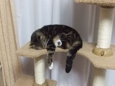 キッチンマットに何故か闘争心をあおられ、ネコキック。