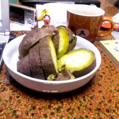 石焼き芋には劣るけど、電子レンジでふかした芋より甘くておいしーです。