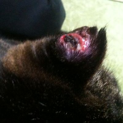猫は傷をなめる習性があるので、腫れてるところはよけいペロペロします。