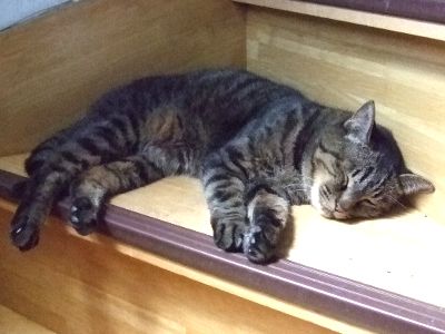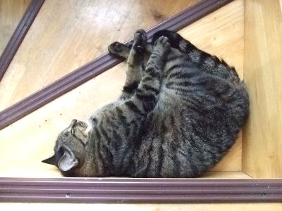 なんでいつも通り敷居におなかのっけてのんべんだらりとしてるんだ。
