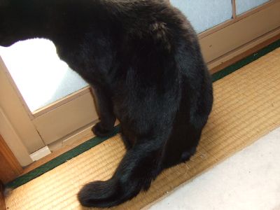 部屋にタヴィにゃんを一人残して居間でごはんを食べた後のこと。