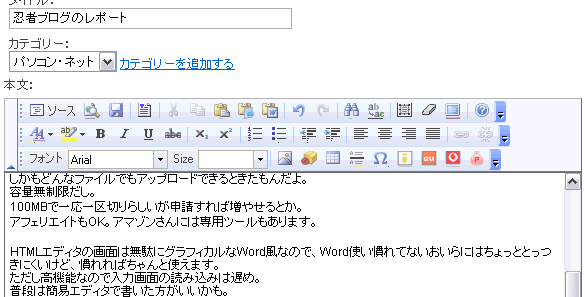 【ブログの比較】 忍者ブログってどうなのよ?(第1版)