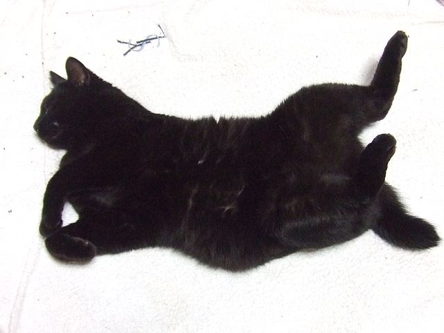 さて寝るかと布団に移動するとまとわりついてきて、寝る前のストレッチの邪魔をします。